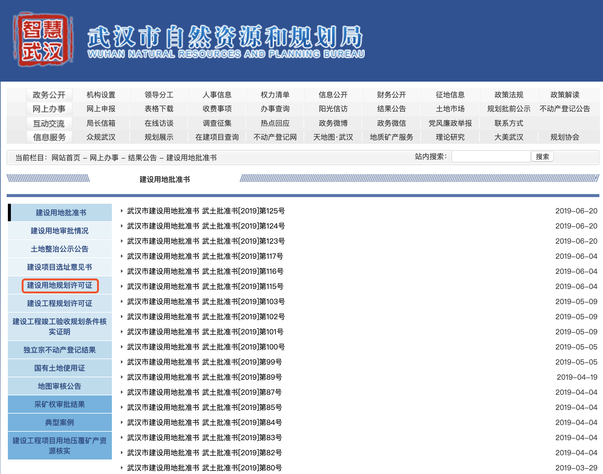 除了上述证件外,《建设用地规划许可证》 需要在武汉市自然资源和规划局查询