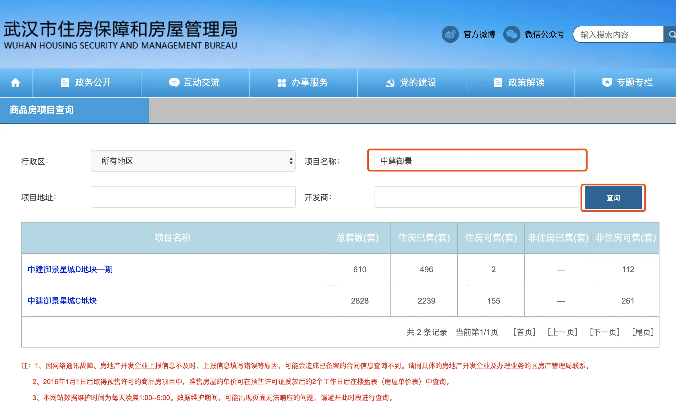 点击商品房项目查询