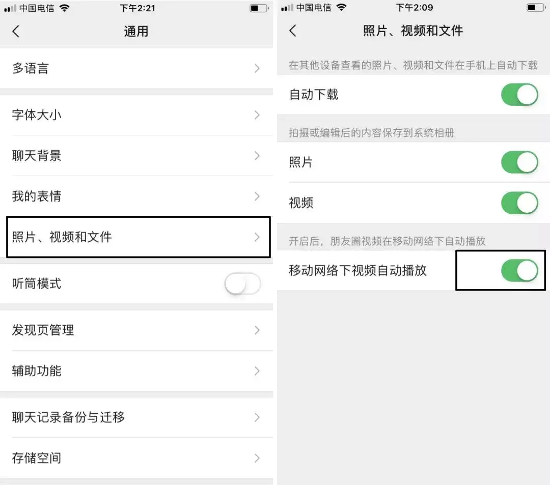 1、朋友圈视频自动播放
