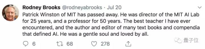 澳大利亚科学院院士、机器人专家Rodney Brooks缅怀说,Patrick Winston是他见过的最好的老师,也是定义人工智能教科书的编辑,Winston心地善良,值得爱戴。