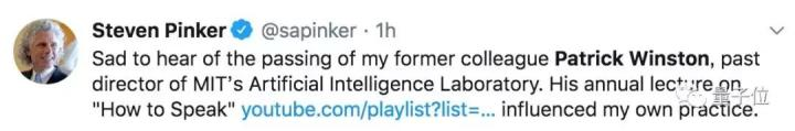 哈佛大学博士、美国实验心理学家、MIT科学家Steven Pinker在推特表示,Winston开设的“How to speak”课程,也影响了自己的实践过程。
