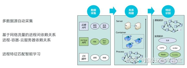 应用高可用服务AHAS 提供了自动探测智能识别的功能,通过对操作系统和三方的标准接口进行采集和分析,构建进程级的调用关系,基于特征库算法识别进程使用的技术组件,并通过server、container、process三个维度进行可视化架构展示。