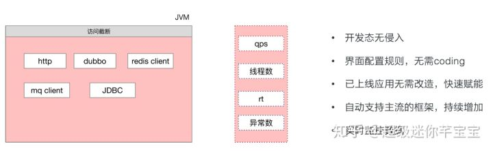 该功能是基于阿里巴巴集团自主研发的开源流量控制组件 Sentinel(github.com/alibaba/sen…),提供了Java 应用和网关(Spring Cloud Gateway, Zuul)应用方法级别的限流和降级,适配多种开源框架,支持Agent和SDK两种接入方式,提升应用面对流量洪峰、依赖服务不稳定时的可用性,具有多样化的流量控制、秒级实时监控、极低的性能损耗等特点。