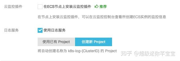 在ACK集群安装界面勾选使用日志服务,集群会安装支持日志收集的必要组件。