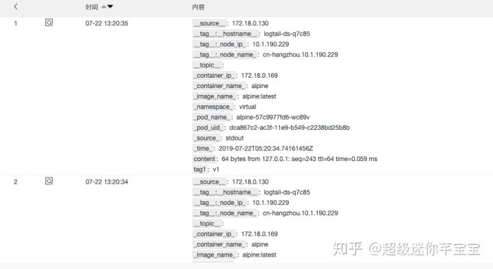 再点开test-stdout这个logstore,可以看到收集到的普通容器和ECI实例的混合stdout日志: