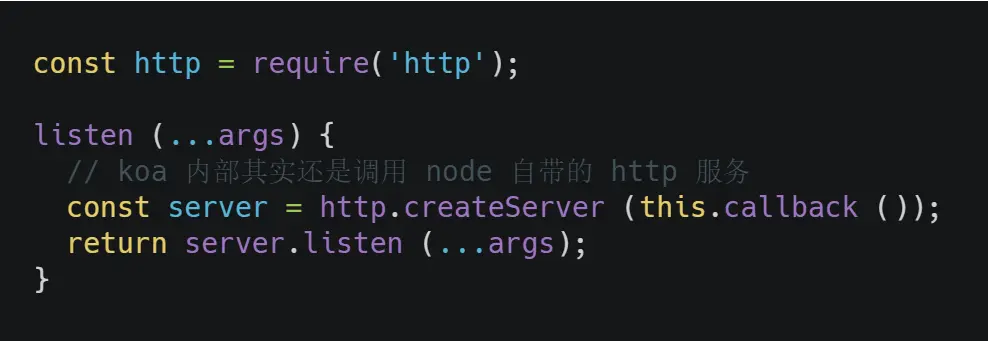 这里的 http.createServer 就是 node 原生启动 http 服务的方法,这里稍微扩展下基础知识,此方法接受两个参数