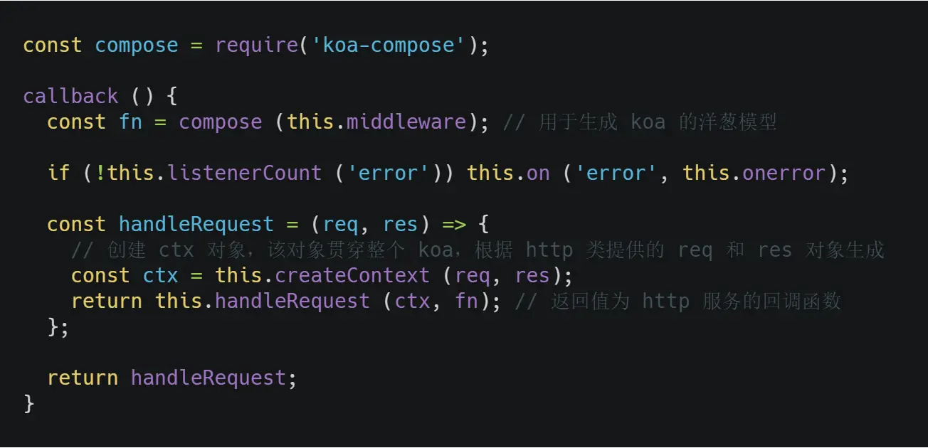 不难理解这里的 this.callback() 方法一定是返回了一个函数,并且接收两个参数 (req, res),下面看下源码