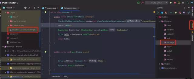 运行的时候先运行Provider,等待Provider启动之后,再启动Consumer(源码都可在github上下载https://github.com/chrisblue0605/dubboSample)