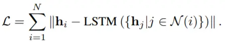 DRNE [79] 不是重建邻接矩阵或其变化,而是提出了另一种修改,即通过使用 LSTM 聚合邻域信息来直接重建节点的低维向量。 具体而言,DRNE 最小化了以下目标函数: