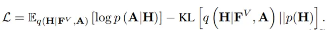 其中G(F^V, A)是方程 45 中的卷积编码器,D(·)是具有交叉熵损失的鉴别器,p[h]是先验分布。本文采用简单的高斯先验,实验结果证明了对抗训练方案的有效性。