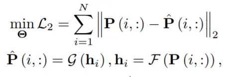 其中E[ij] = W[2](h[j] || h[i])是两个高斯分布h[j]和h[i]之间的第二个 Wasserstein 距离,D = {(i, j, j')|j ∈ N (i), j' ∈/ N (i)}是所有三元组的集合,对应于一阶邻近度的排名损失。 重建损失定义为: