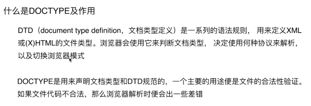 传统(宽松)模式:包含所有的HTML元素和属性,包括展示性和弃用的元素。