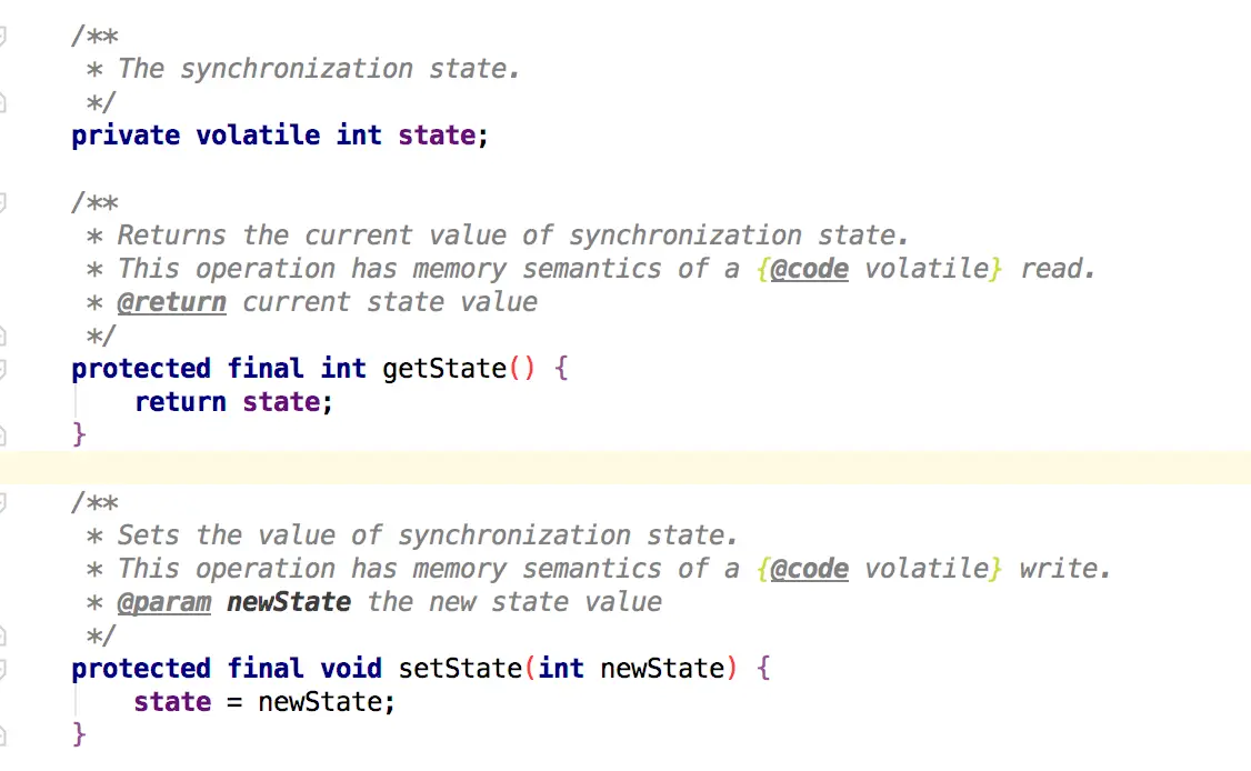 上步有个获取状态的方法。这个状态维护在AQS中,以来表述当前锁的状态