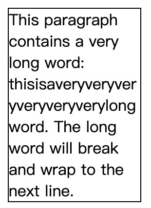 <p class="work-break">This paragraph contains a very long word: thisisaveryveryveryveryveryverylongword. The long word will break and wrap to the next line.</p>