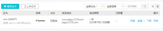 3、返回SSL证书页面,可以看到证书列表里多了一条记录