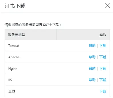 6、弹出下载页面,选择Nginx版本下载到本地备用,此时证书申请已经完成。