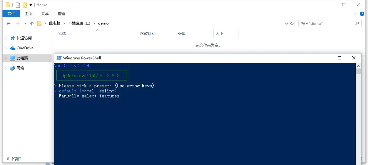 在指定项目文件夹内打开窗口,输入该命令,直接按下回车,这里我选用默认的babel与eslint配置