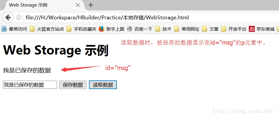 <input type="button" value="读取数据" onclick="loadStorage('msg');" />