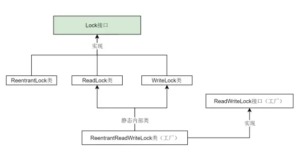 ReadWriteLock其实是一个工厂接口,而ReentrantReadWriteLock是ReadWriteLock的实现类,它包含两个静态内部类ReadLock和WriteLock。这两个静态内部类又分别实现了Lock接口。
