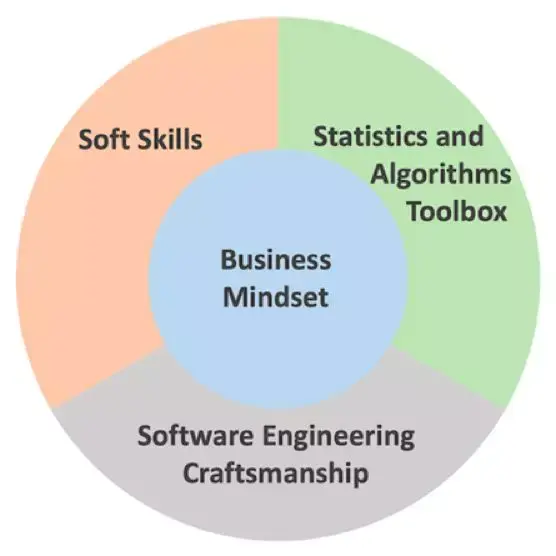 3. 商业思维:商业思维技能在Dominik Haitz的技能组合中占据核心位置(见上图)。这项技能关系到一个数据科学项目能够创造多少商业价值。