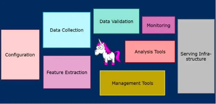 数据科学独角兽的工作:数据科学软件只是IT基础设施的一部分,只有一小部分的代码能真正参与到软件的工作中。