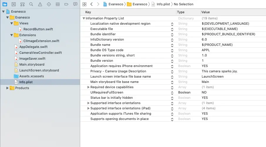 第一个密钥为Documents目录中的文件启用文件共享。 第二个让您的应用程序从文件提供程序file provider打开原始文档,而不是接收副本。 启用这两个选项后,存储在应用程序Documents目录中的所有文件都将显示在Files应用程序中。 这也意味着其他应用可以访问这些文件。
