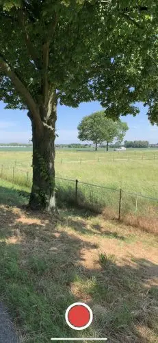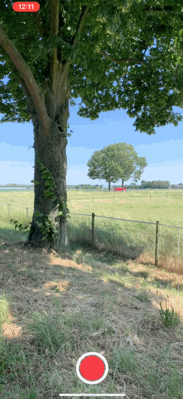 你应该看到一些看起来像一个简单的相机应用程序。 有一个红色的记录按钮,周围有一个白色的环,它显示了全屏的摄像头输入。