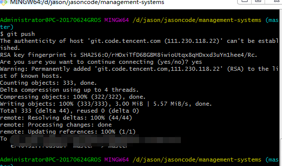 至此,git重新与腾讯工蜂系统建立了一条新的主机连接记录,可以重新提交代码啦!