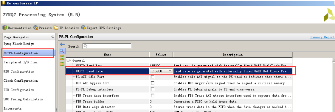 PS_PL 页面提供了 PS 到 PL 的相关接口配置信息以及 PS 部分一些配置信息;