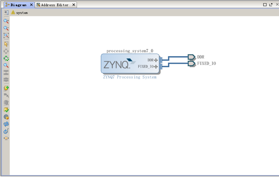 生成后的 ZYNQ 系统外部管脚如下,一个是 DDR 的接口,一个是 FIXED_IO。
