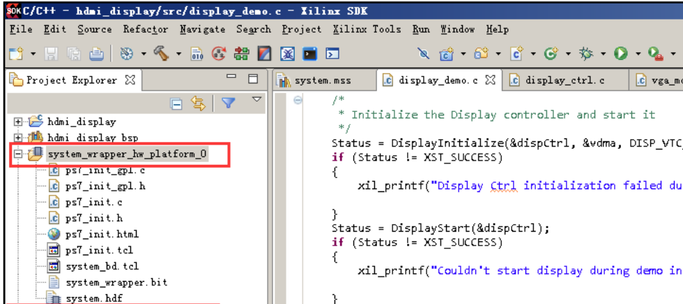 (15)硬件导出后,选择菜单 File->Launch SDK,启动 SDK 开发环境, 会出现1 个 hardware platform:sytem_wrapper_hw_platform_0。