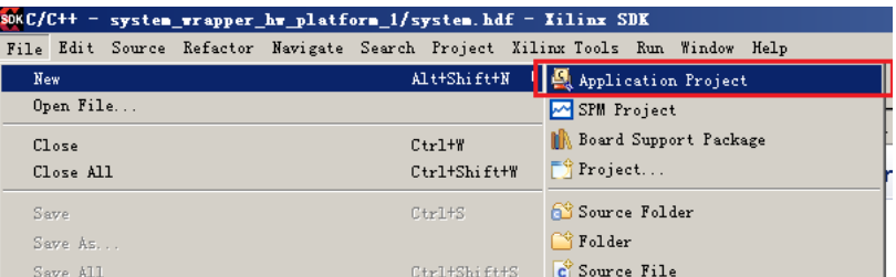 (16)进入SDK 开发环境后,点击菜单 File -> New -> Application Project。