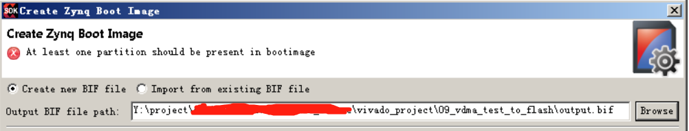 点击 Browse 选择选择 Zynq Boot Image 文件.bif 的存放地址。