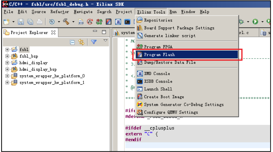 (2)在 SDK开发环境里,选择菜单 Xilinx Tools->Program Flash。