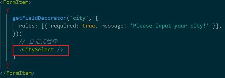 其次,在UserInfoForm中引用自定义组件CitySelect