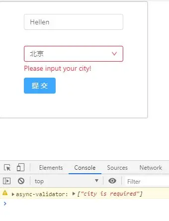 当点击提交按钮时,因Form没有获取到对应自定义组件的值,从而报错,报错信息如下图: