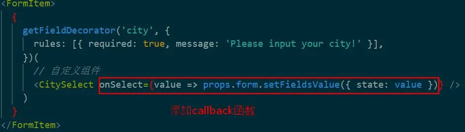 在UserInfoForm组件中调用自定义组件CitySelect时添加onSelect的callback函数