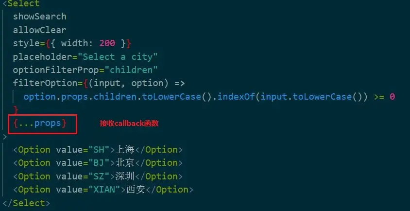 在自定义组件CitySelect中添加{...props}来接收callback函数