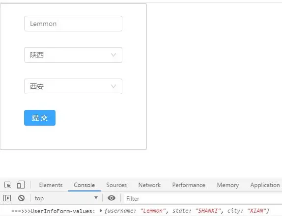 此时再次点击提交按钮时,便可成功获取自定义组件的值。