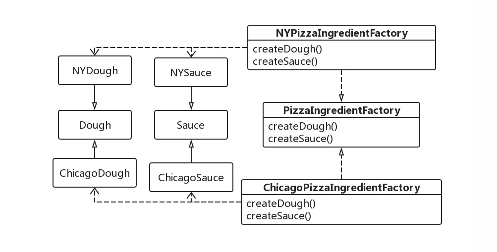 public interface PizzaIngredientFactory{ public Dough createDough();// 面团 public Sauce createSauce();// 酱 public Clams createCheese();// 芝士 }-