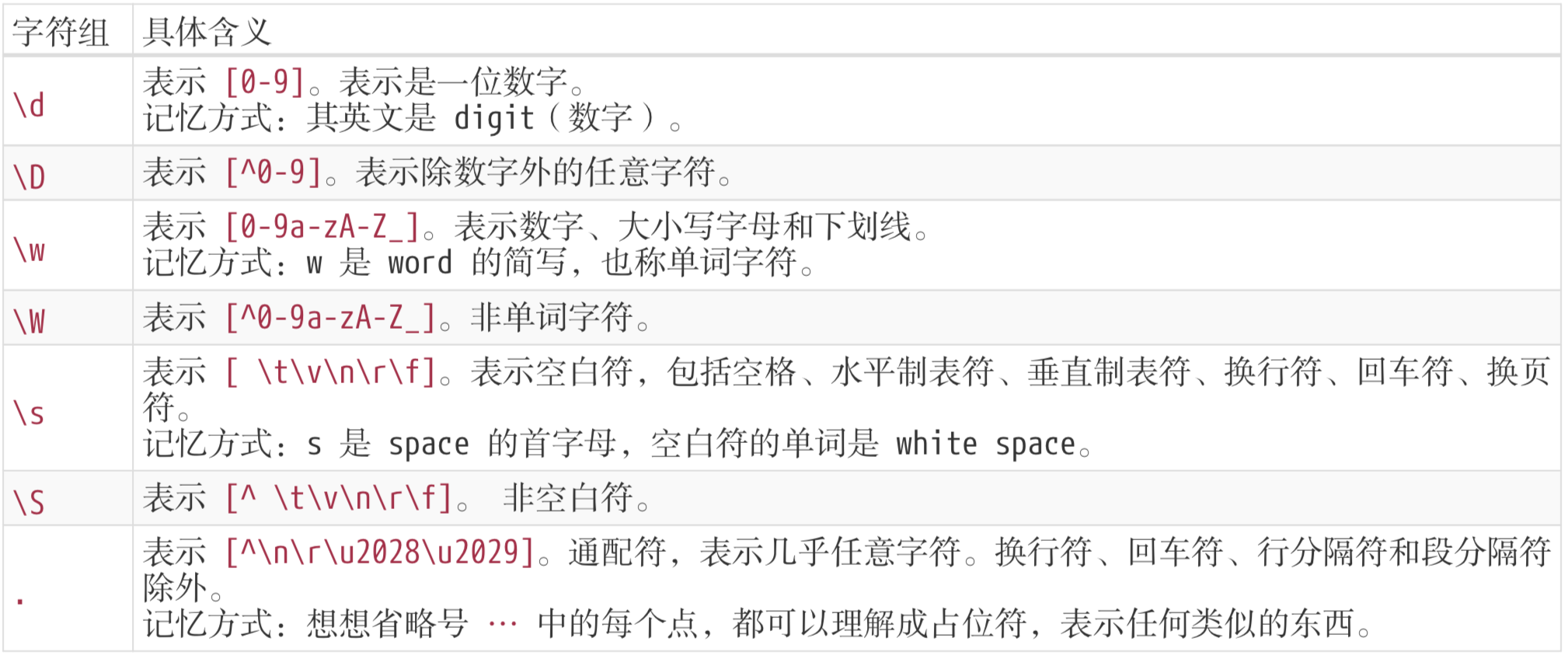 注意:其实不用单独去记所有的字符,而是要知道所有字符的一个大体分类,然后之后再根据实际场景去使用相应的字符。