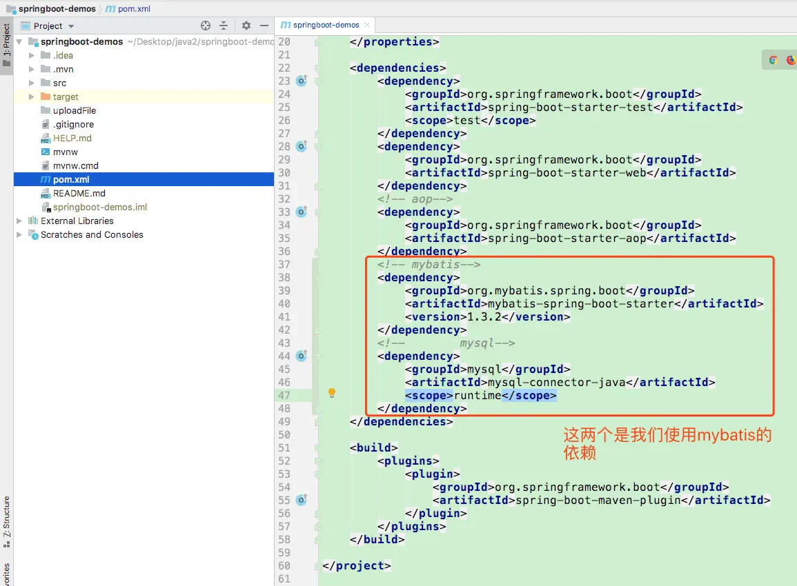 一,在pom.xml里添加mybatis依赖。