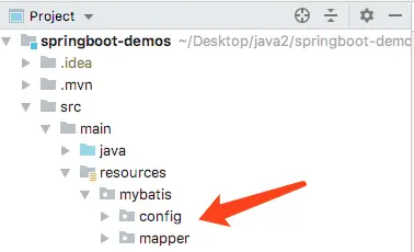 接下来我们在resource目录下新建mybatis目录,然后在mybatis目录下新建/mapper目录和/config目录
