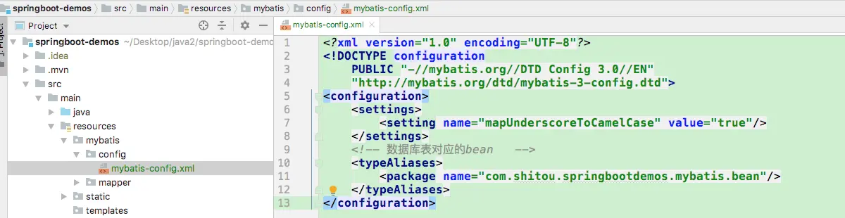 <package name="com.shitou.springbootdemos.mybatis.bean"/>