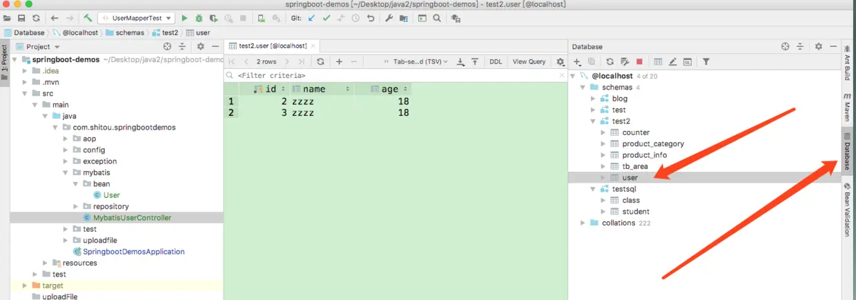 到这里我们就轻松的实现了springboot2结合mybatis来管理数据库的功能了