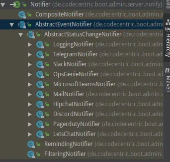 可以通过实现Notifier接口,或者继承AbstractEventNotifier或者AbstractStatusChangeNotifier来实现自定义通知事件。其集成关系如下图所示: