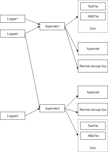 所以logger和appender是多对多的关系 ** 一个logger可以对应多个appender 多个logger可以用同一个appender**