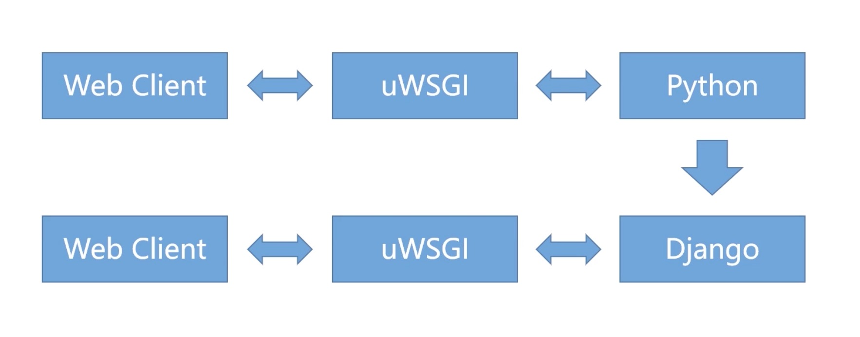 - Django runserver 可以直接对外服务,但是只用于测试,不安全且性能较差