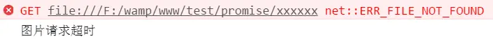 requestImg函数会异步请求一张图片,我把地址写为"xxxxxx",所以肯定是无法成功请求到的。timeout函数是一个延时5秒的异步操作。我们把这两个返回Promise对象的函数放进race,于是他俩就会赛跑,如果5秒之内图片请求成功了,那么遍进入then方法,执行正常的流程。如果5秒钟图片还未成功返回,那么timeout就跑赢了,则进入catch,报出“图片请求超时”的信息。运行结果如下: