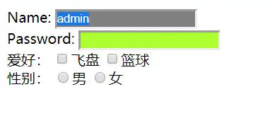 <input type="checkbox" value="男">飞盘